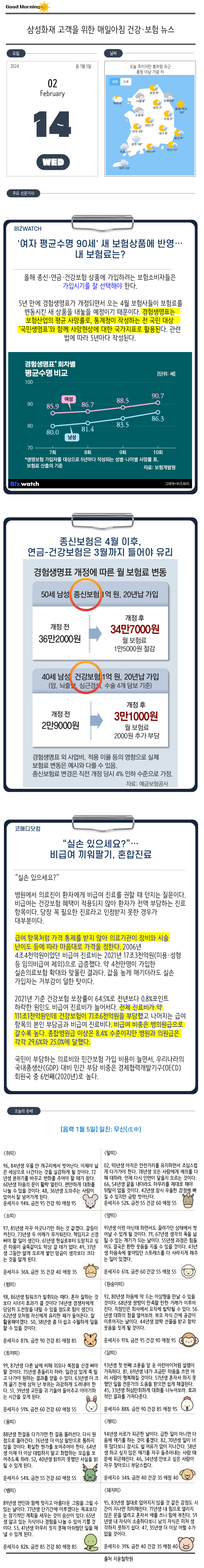 | Daily News (02.13.화) - 겨울 정형외과, 삼성화재 차보험 인하, 적정체중 (0) | 2024.02.14 |