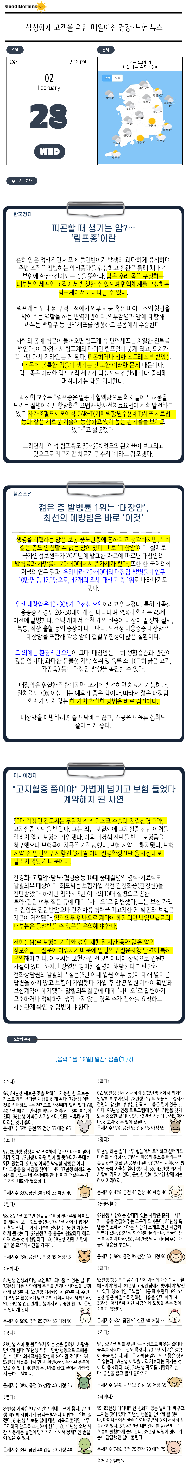 | Daily News(03.04.월) - 폐암, 보험가입, 자동차보험 (0) | 2024.03.04 |