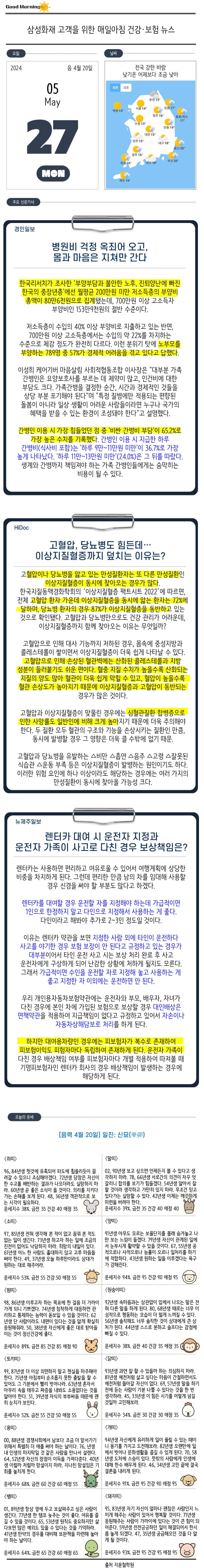 | Daily News(05.22.수) - 숨은 보험금 확인하기 (0) | 2024.05.28 |