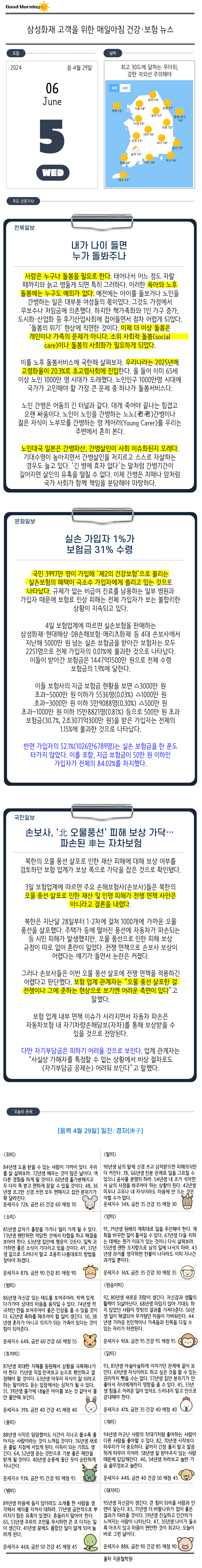 | Daily News (06.07 금) 노후돌봄준비 (0) | 2024.06.13 |