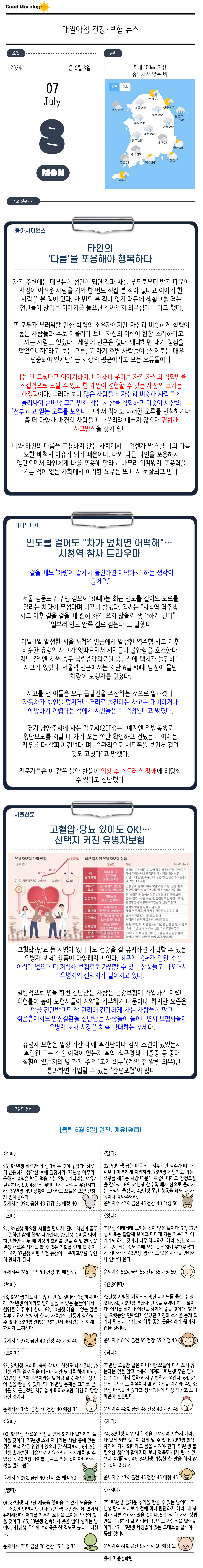 | Daily News (07. 5 금) - 나라에서 지원하는 '풍수해보험' (0) | 2024.07.06 |