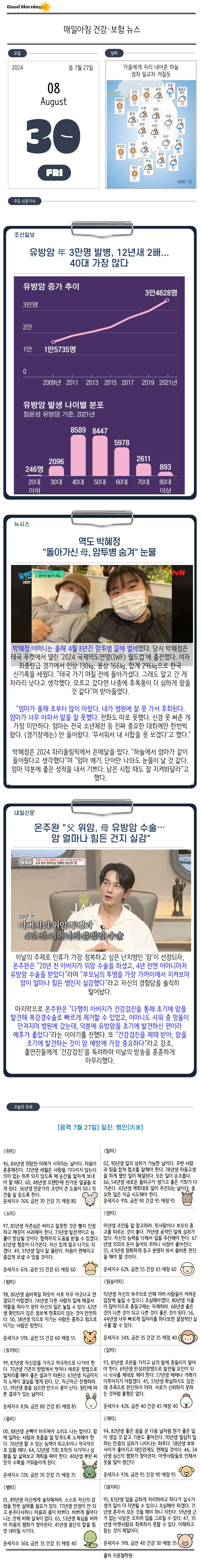 카테고리 없음 'Daily News (08. 30 금) 유방암 치료과정·비용 by 데일리 뉴스 2024 2024. 8. 31. 728x90 반응형 'Daily News (08. 30 금) ① 유방암, 40대가 가장 많아 ② 박혜정, 母 암투병 ③ 온주환, 父위암, 母 유방암 (참고) 유방암 치료과정·비용 반응형 공유하기 게시글 관리 Daily News 저작자표시 (새창열림)
