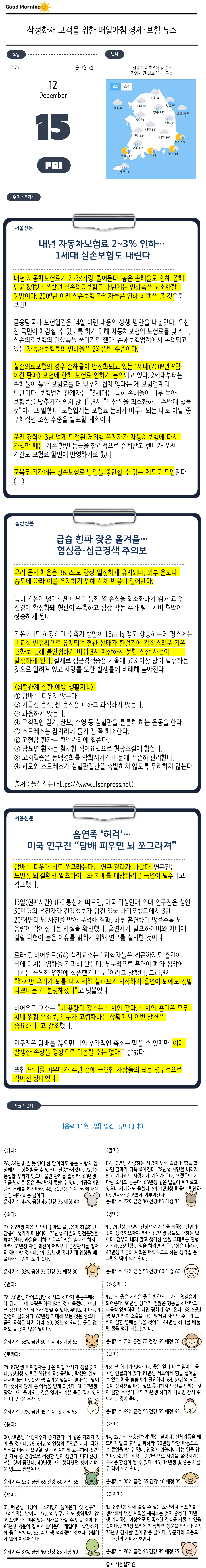 | Daily News (12.18) - 간병파산, 겨울보험, 암 보상 (0) | 2023.12.18 |