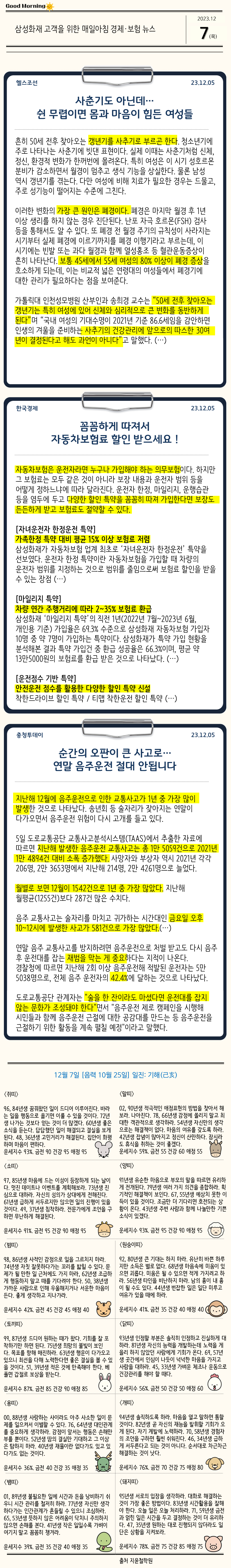 | Daily News (12.14) - 보험영업, 1인가구, 퇴직연금 (0) | 2023.12.15 |