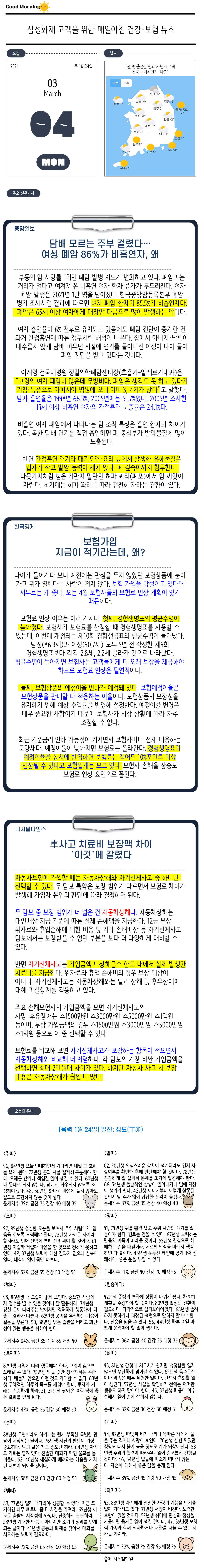 | Daily News(03.05.화) - 자동차보험, 혼인수, 출생아수 (0) | 2024.03.06 |