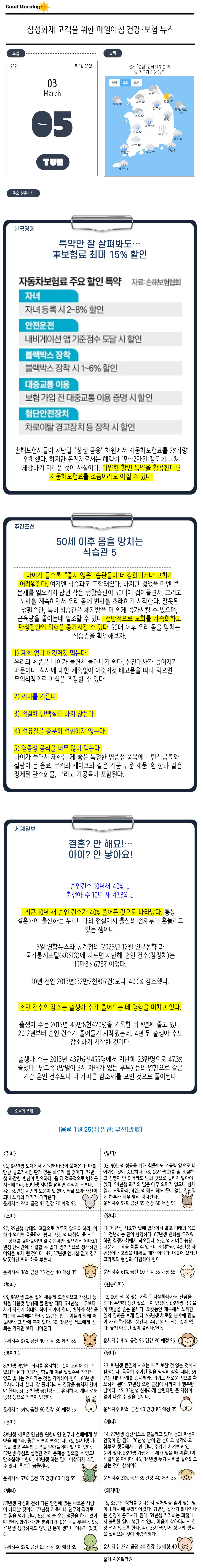 Daily News(03.05.화) - 자동차보험, 혼인수, 출생아수