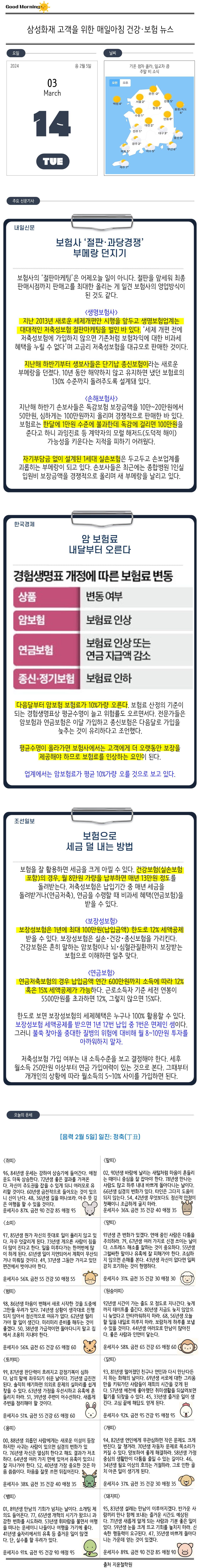 | Daily News (03.13.수) - 암보험료 인상, 만성질환 (0) | 2024.03.14 |