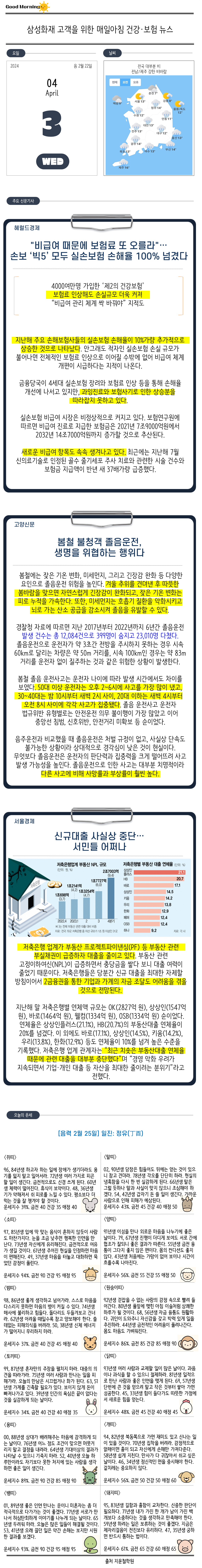 | Daily News(04.01.월) - 심근경색 피크, 노후 현금흐 (0) | 2024.04.02 |