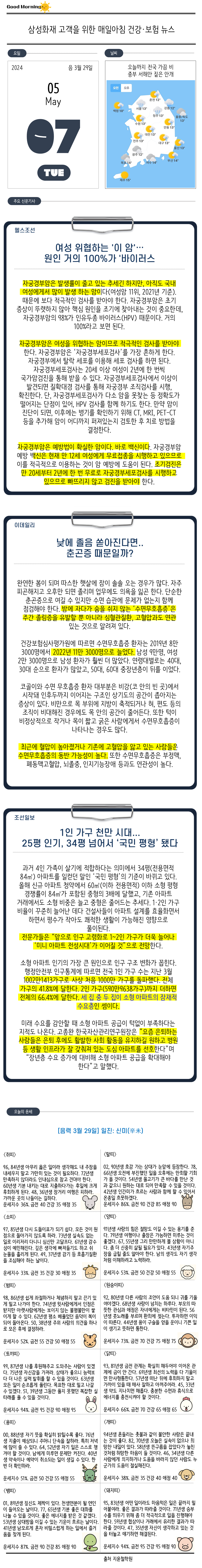 | Daily News(05.08.수) - 대장암, 3세대 실손 (0) | 2024.05.09 |