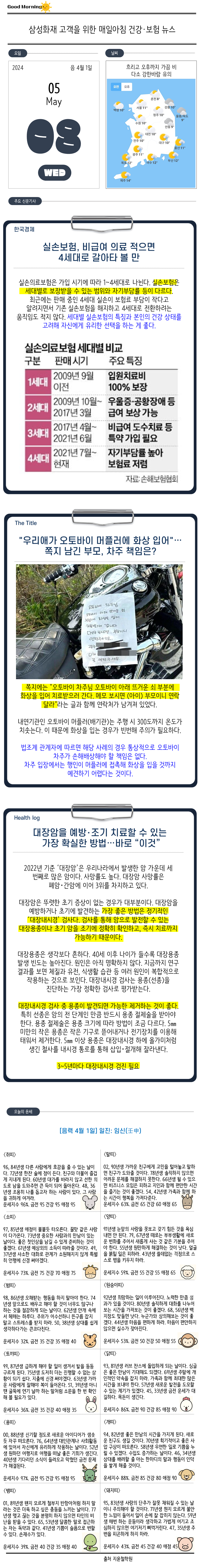 | Daily News(05.10.금) - 국민건강보험과 실손 (0) | 2024.05.13 |