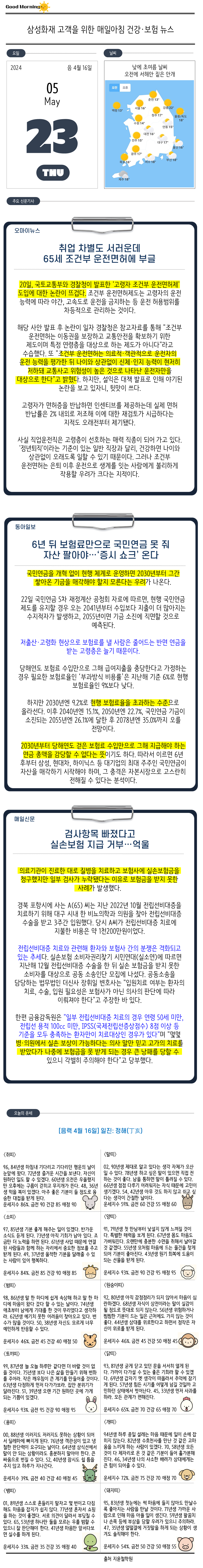 | Daily News(05.22.수) - 숨은 보험금 확인하기 (0) | 2024.05.28 |